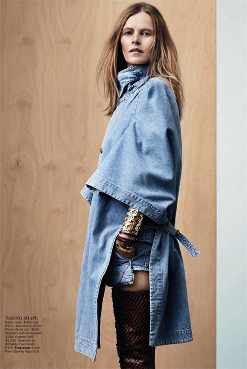 Oversize款式的牛仔大衣外套被一根宽腰带束住,很好的展示腰身,同时让造型看上去精致有型,看似随意的造型散发迷人痞帅气质。