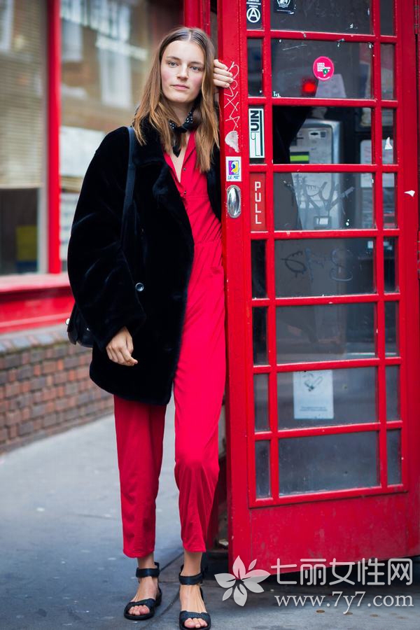 红色连体装个性休闲,新年穿上心情也会轻松不少。外搭外套的黑白经典组合,照样洋气十足。