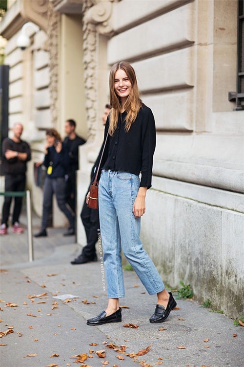小皮鞋穿脱方便,也是懒人鞋的一种吧!不知道直筒牛仔裤搭配什么鞋子好看,选择小皮鞋鞋既休闲又舒适。