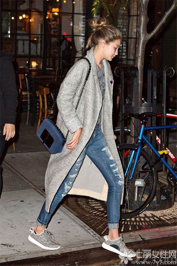 Sneakers的特点是非常休闲舒适,由于运动感的特性略显单一,搭配破洞牛仔裤可以带来鲜活气氛,立即彰显出时髦味道。天使模特Gigi Hadid更是早已深谙此道!