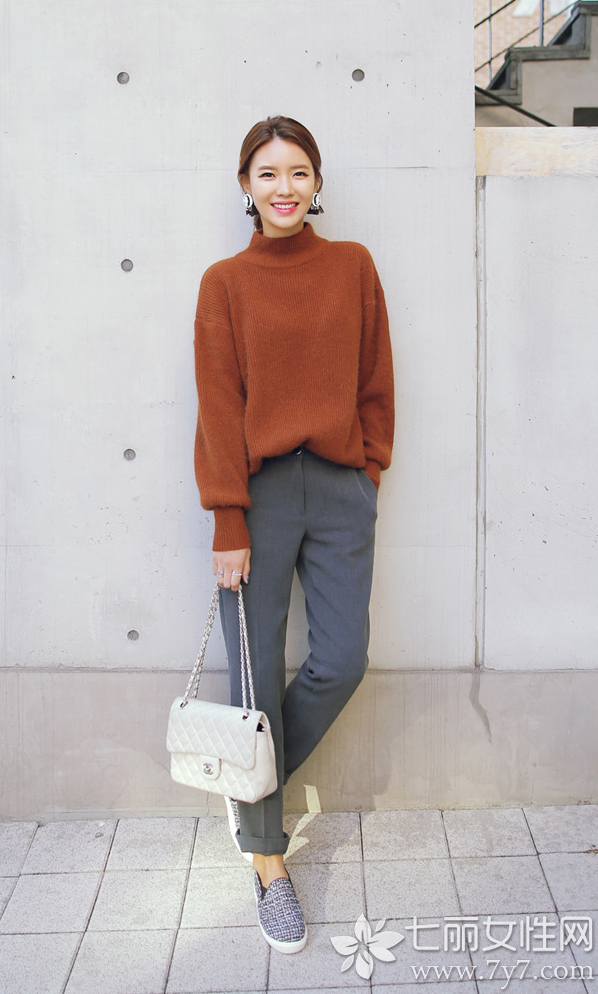 No.3 休闲裤+高领毛衣