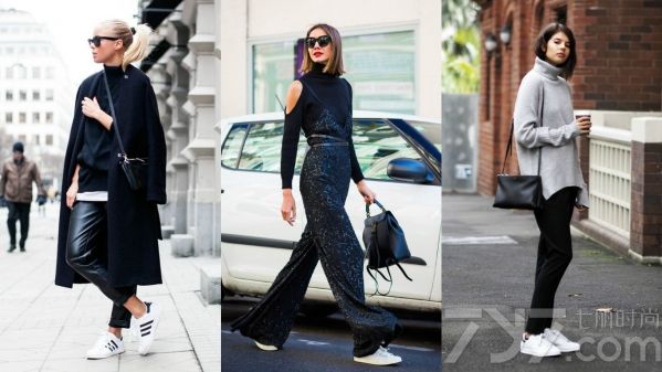 运动鞋无处不在!高领毛衣搭配运动鞋打造休闲时尚混搭,鞋子要干干净净的哦~