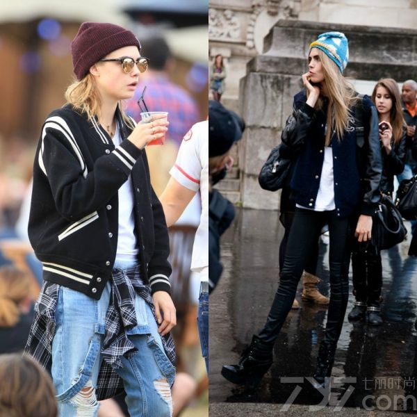 Cara Delevingne也是酷爱棒球服来搭配美式休闲风,街拍图片随便翻翻就有棒球服的身影。