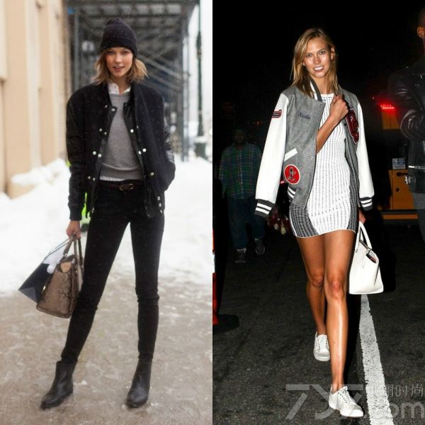 高挑身材的超模Karlie Kloss's即可以把棒球服穿出帅气利落感,也能把棒球服穿出青春俏丽感!