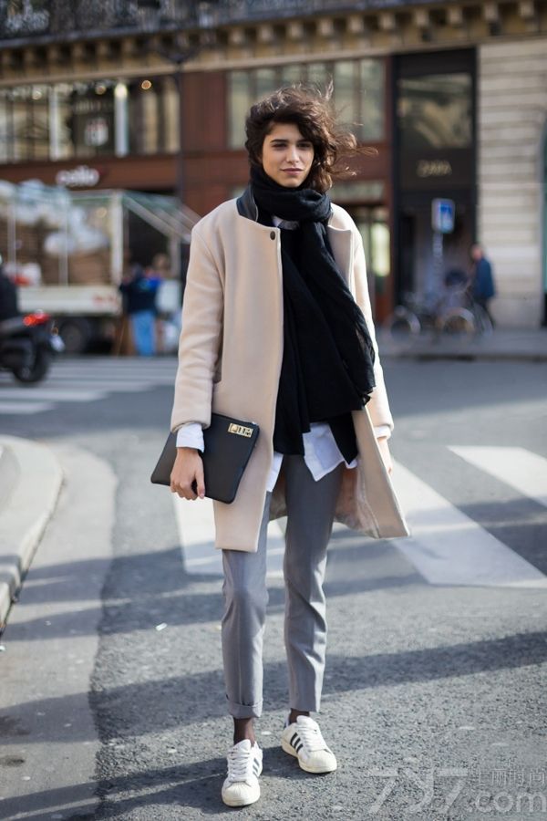 如果想玩混搭,白球鞋绝对会是不错的选择,至少不会破坏色彩的整体和谐度哦!