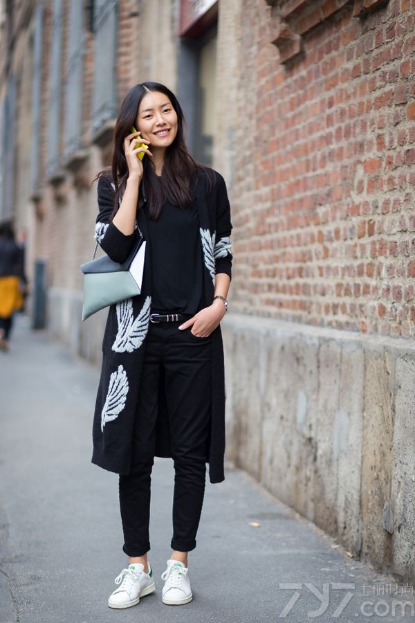 白色球鞋搭配街拍图片