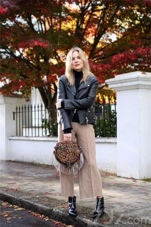 机车皮夹克就是本身很有设计感的外套,内里搭配简单的款式帅气感即出。