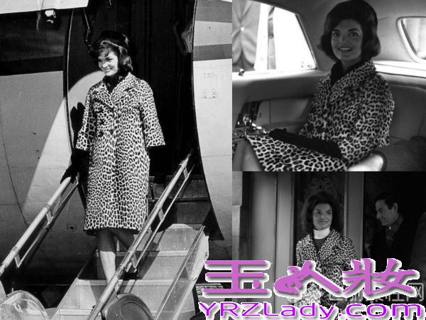 “第一夫人” 杰奎琳·肯尼迪将豹纹大衣穿出高贵优雅气质。↓