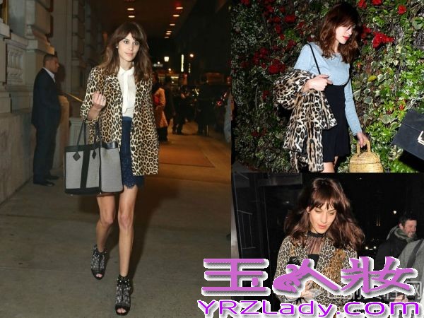 装扮给人清新感的It gir Alexa Chung也酷爱奢华的豹纹大衣。↓