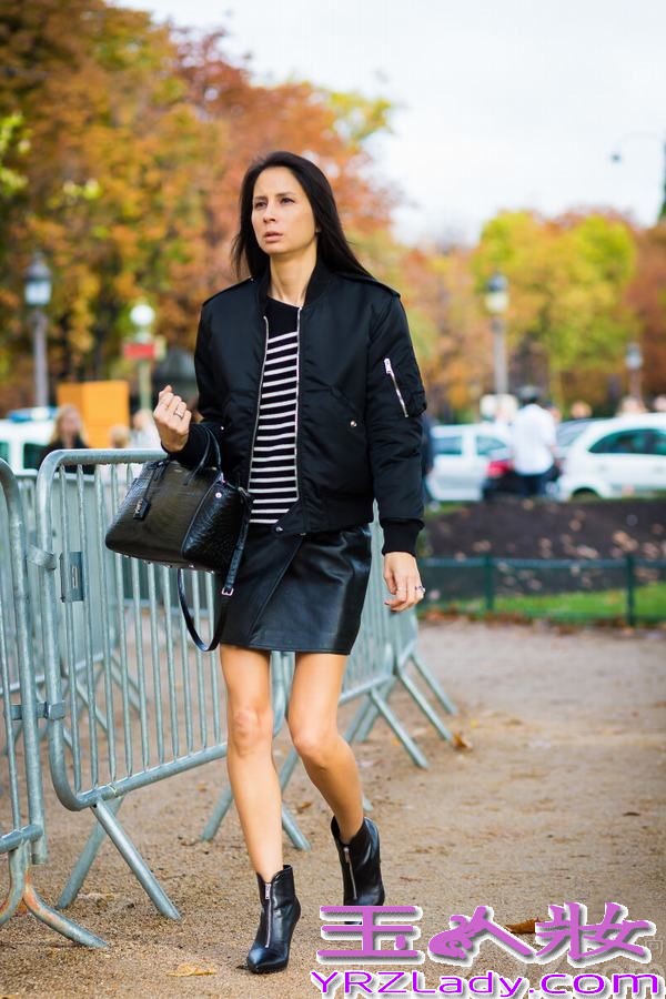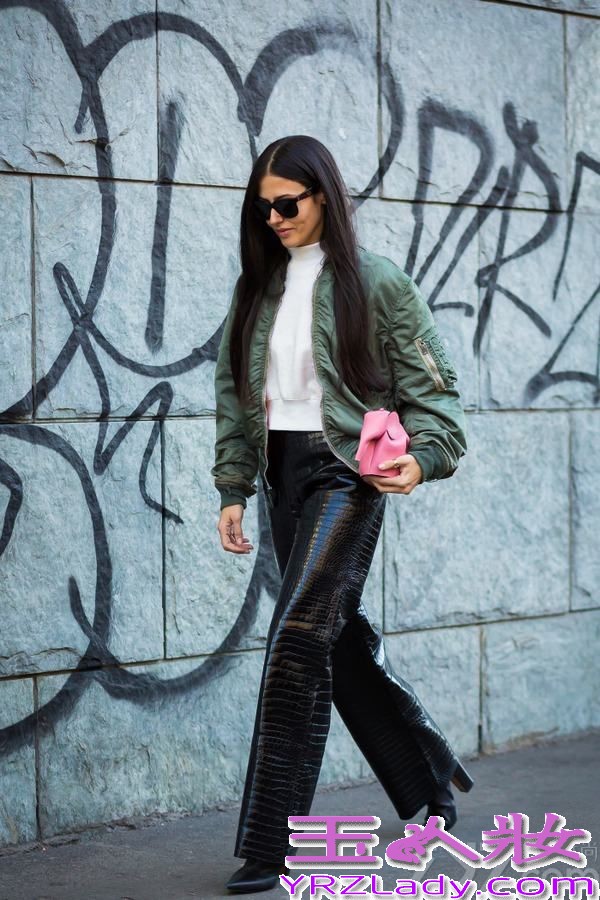 短款飞行夹克在2015火爆时尚圈,这种帅酷干练的款式经女潮人演绎,总有种别样的魅力让其爱不释手,而且面料紧实轻盈也不用担心会冷。