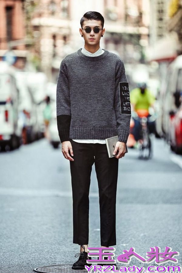 何穗最新街拍,灰色毛衣+墨绿色光泽感半裙,文艺慵懒,少女感十足。马海毛毛衣来自H&M,手提包和粉色毛拖鞋均来自Gucci,半裙来自Tibi 2016