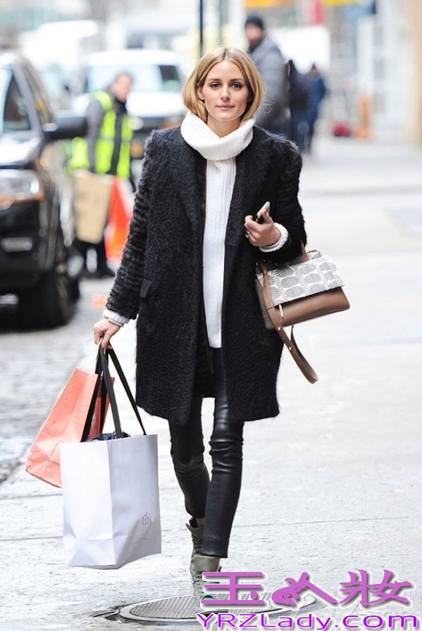 宽松版的皮裤需要气场强大的菇凉才能驾驭,配上针织毛衣的范儿在臃肿与大气之间徘徊,自身气质和身材显得尤为重要。