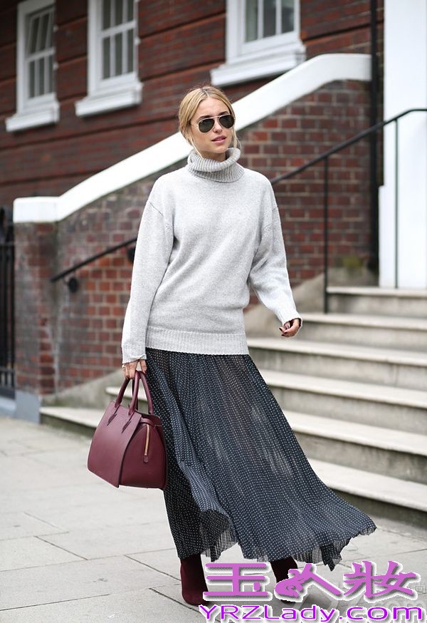 飘逸的长裙也是将优雅进行到底的单品,而搭配上针织毛衣,少了些许沉闷气息,更多了些女人风情在里面。