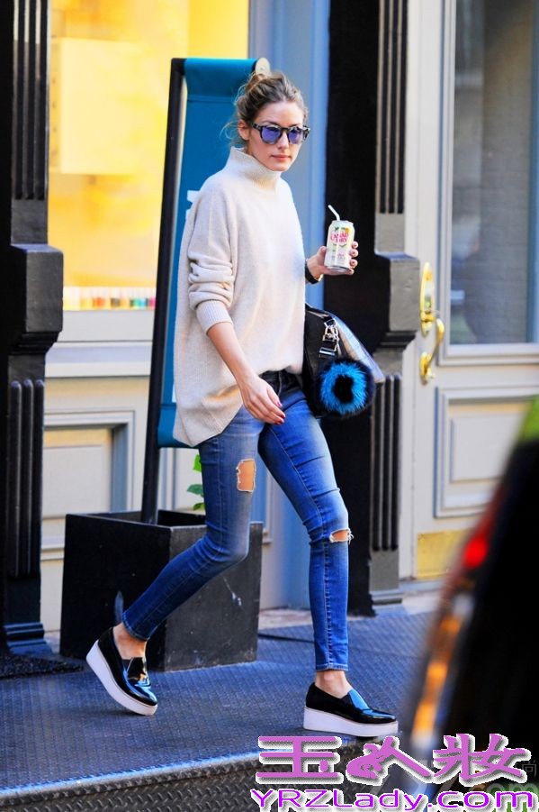 一件针织毛衣搭配破洞铅笔裤,显得清爽干练又不失个性,配上舒适的黑色乐福鞋,逛上一整天都不闲多!