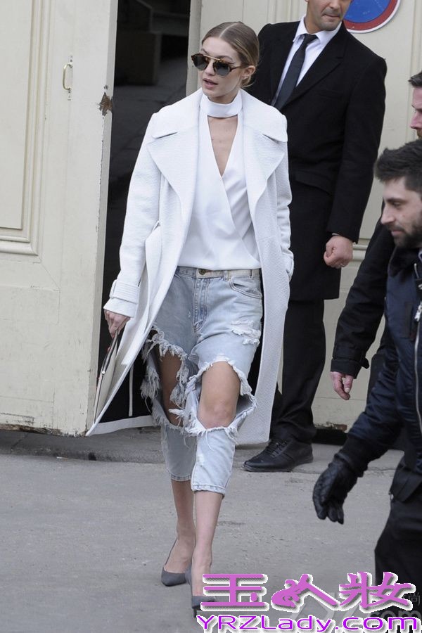 新颖的斜剪裁上衣,大破洞的牛仔裤这样充满个性随性风格的单品,白色大衣也能通通hold住,甚至有着中规中矩的时髦味道。