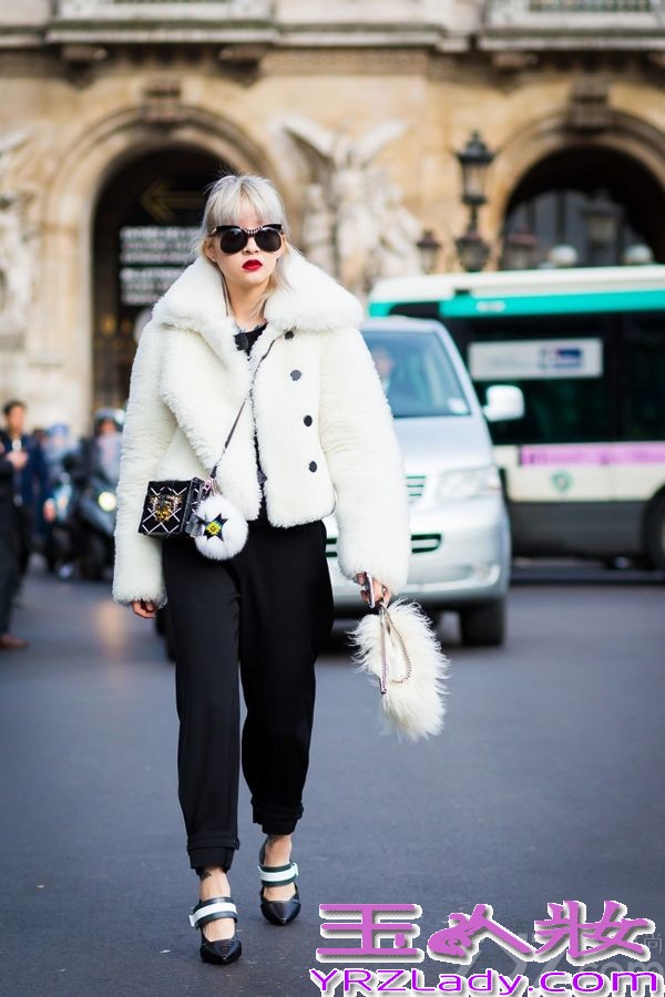 短款皮草可谓是萌妹子的偏爱,奢华大气与娇小身躯相衬托,显得尤为迷人,当然逆天的保暖性,出街再也不怕冷了。再来说说图中达人的搭配看点,短款皮草绝对比长款易hold住。