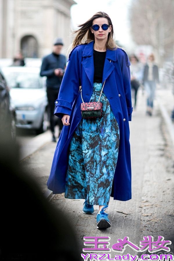 蓝色能给人带来一种贵气。而剪裁利落的大衣加入浓郁艳丽色调更显独特气质,增白减龄的效果也是杠杠的!