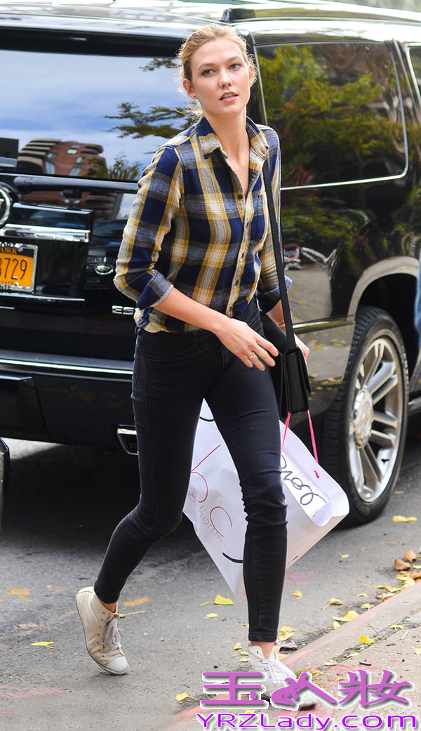 潮流运动范,当然离不开格纹单品,至少一到夏天,格纹配牛仔的身影更是随处可见。早春想要用格纹来取胜,当然得学卡莉克劳斯玩混搭,格纹颜色选得清新亮眼,让人群中的你更突出,而同样混搭中规中矩的皮质单肩包,时尚而颇具个性。
