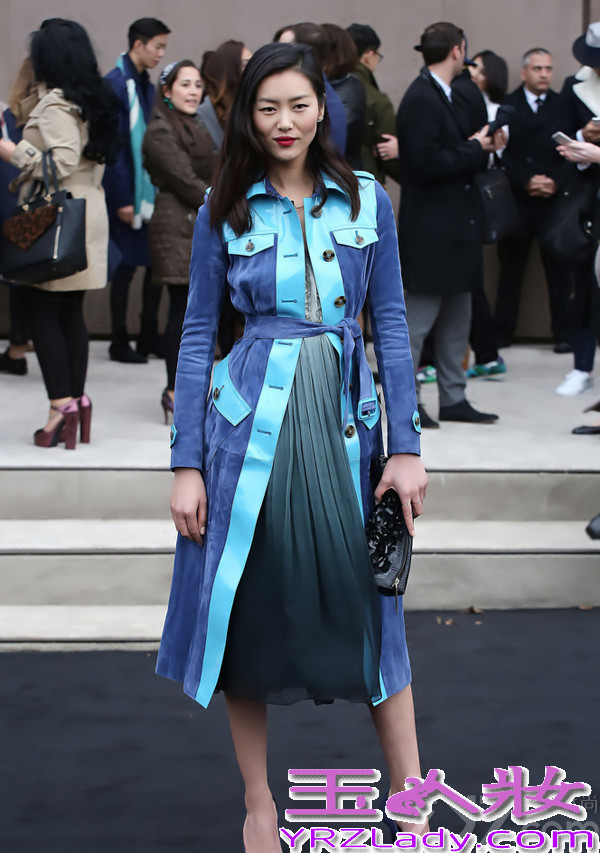 刘雯选择的是内搭渐变色连衣长裙,再用腰带打造高腰线,配上同色高跟鞋,气场十足。
