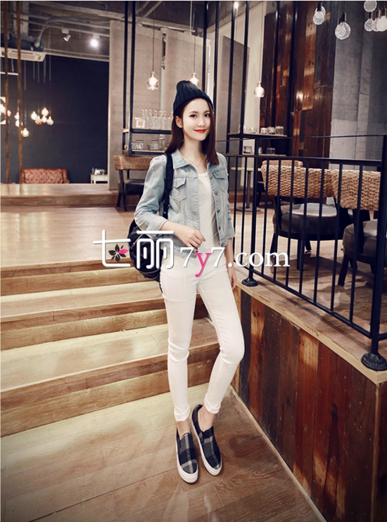 搭配看点:清新的浅蓝色牛仔衣搭配白T和白色紧身裤,统一的白色系在视觉上可以拉长身体线条,不过极具膨胀感的白色可是胖MM的雷池哦。臀部或大腿有肉肉的MM建议内搭中长T恤,颜色以黑白灰为佳,或者腰间系上一件格纹衬衣,不仅时髦有范儿,遮肉肉也是一流的。下搭乐福鞋比较休闲,搭配运动鞋则比较贴合时下潮流,平底鞋就更有女人气质。