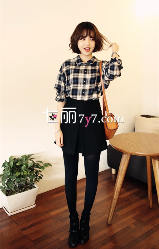 格子衬衫搭配裙子,格子衬衫搭配什么裙子,格子衬衫配短裙