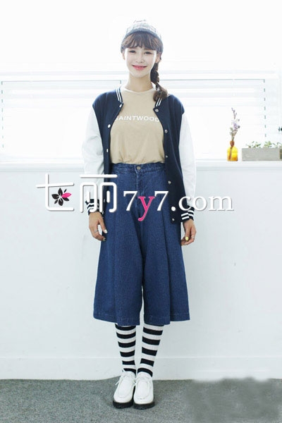 搭配看点:经典款的黑白色棒球服外套,拼接款式是很多女生都喜欢的风格,内穿浅色字母T,下身配上高腰牛仔阔腿裤,越长设计拉长腿部线条,长筒袜显得更加前卫有个性!