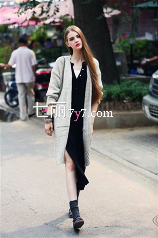 搭配看点:长款针织衫是本季最热的时尚单品之一,搭配黑色侧开衩长裙,性感又很有街头范儿,不过这样的搭配对身高的要求还是比较高的,小个子MM建议谨慎尝试。