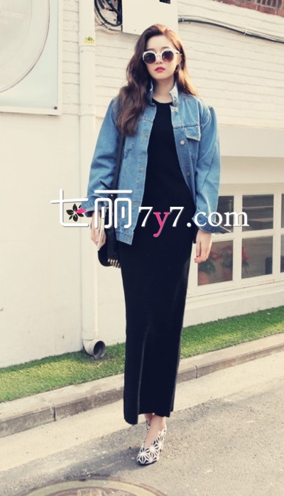 牛仔外套搭配图片,牛仔外套怎么搭配长裙,牛仔外套搭配长裙图片