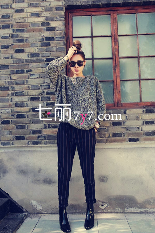 搭配看点:春寒还未完全退去,一件oversize针织毛衣绝对是御寒首选,将针织毛衣下摆扎进裤腰,更显慵懒随性。一双黑色亮皮踝靴与哈伦裤同色系,在视觉上更能拉长腿部线条。