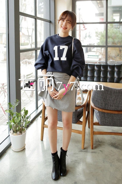 搭配看点:藏蓝色的数字卫衣,宽松的版型加上数字添加,变得不那么沉闷单调,下身穿不规则的灰色包臀裙,腰部系带设计变得特别,脚踩一双黑色高跟鞋,整体穿着突出纤细长腿!