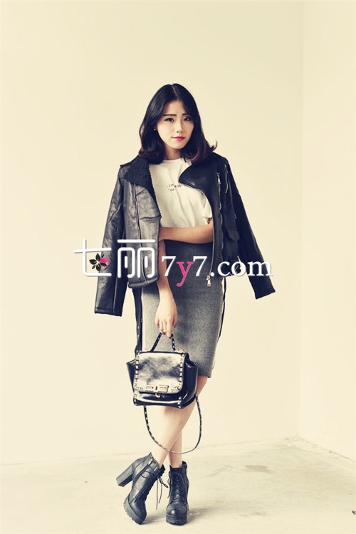 搭配看点:廓形感十足的短款机车绝对是时尚达人必备的凹造型利器,内搭一件简约的白T石潮人屡试不爽的搭配方式,下搭复古灰色及膝半身裙,迷人曲线尽显。再选择一款粗高跟鞋,气场莫名强大,不过搭配一款小巧精致的手提包,却让造型有一丝复古小女人气息,这样的搭配是你的菜么?喜欢就赶紧尝试吧,保证增高显瘦哦。