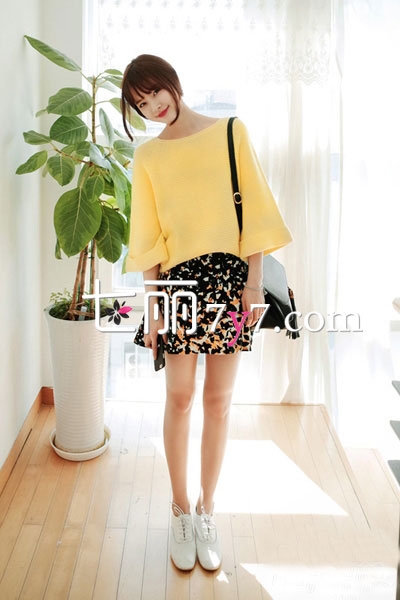 搭配看点:橙色的印花半身裙,黑底的裙装上展示出温柔恬静的气息,上身穿黄色毛衣,上下呼应的色彩显得格外淑女,再穿上一双韩系小白鞋,整个装扮洋溢着青春活力感!