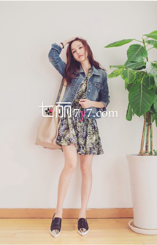 搭配看点:别致的印花连衣裙是整套装扮的key point,如果你有一件潮爆的连衣裙,那就完全不用担心整体造型是否时尚了。在牛仔外套的选择上可以选择简约的廓形或oversize款式,不过设计一定不可过于复杂凌乱,尤其不要拼色什么的哦,除非你想走嘻哈路线啦。