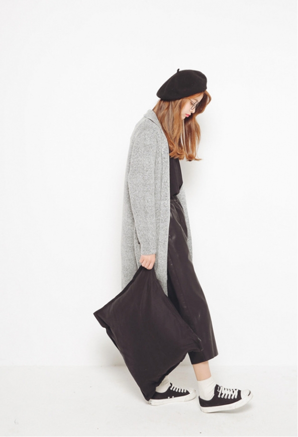 LOOK 9:针织开衫+黑T+阔腿裤+帆布鞋