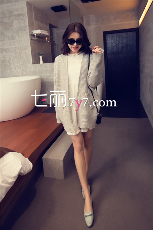 搭配看点:针织开衫外套搭配清纯的白色连衣裙,鞋子选择时下正热的平底单鞋更添潮流感。搭配一款mini斜挎包,更具柔美熟女气质。