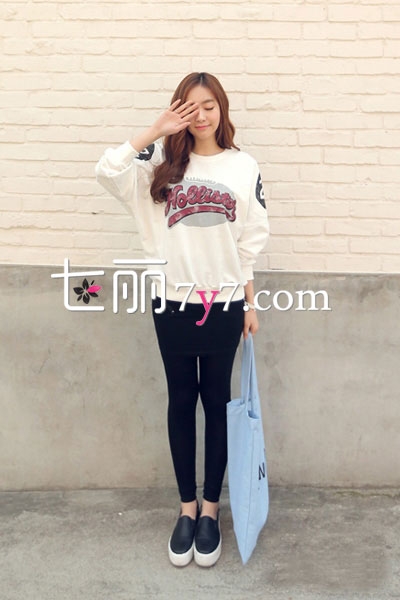 搭配看点:白色宽松的字母卫衣,用韩版休闲的款式,彰显出韩国女孩的魅力,蝙蝠袖设计更显瘦,下身穿黑色牛仔裤,百搭的必备品,穿上休闲懒人鞋,典型韩系风更有魅力!