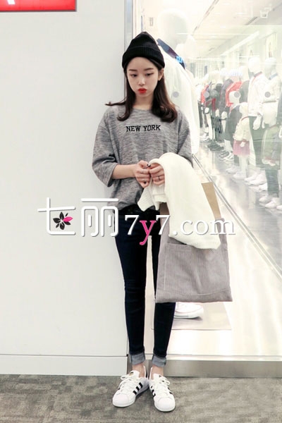 搭配看点:简约的灰色卫衣,宽松设计帮助藏肉显瘦,加上字母装饰,看起来不那么单调,下身穿黑色铅笔裤,配上白色的球鞋,经典韩系休闲搭配,让胖女生轻松拥有时尚活力!
