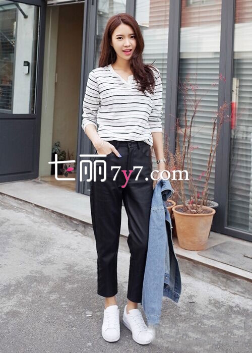 条纹衫+长裤