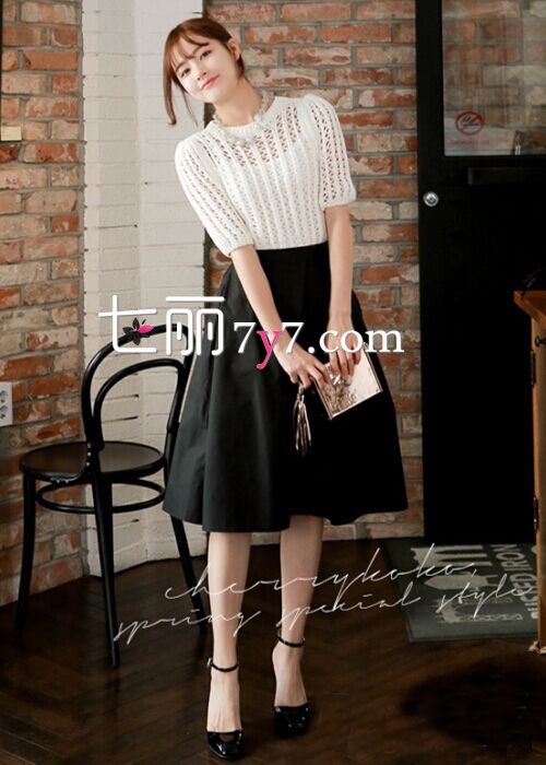 搭配看点:黑色的半身长裙,带些蓬松和高腰的设计,拉长身材比例,上身穿白色蕾丝上衣,稍显镂空风格突出心计性感,脚踩一双黑色箭头中空高跟鞋,展示气质女人味!