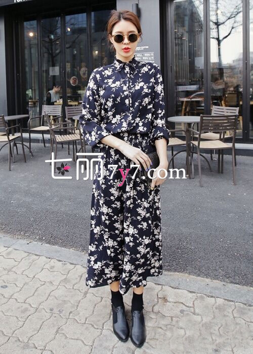 搭配看点:长袖收腰的碎花长裙,长及脚踝的设计,加上腰部收腰,拉长身材的比例,让梨形身材的MM遮挡赘肉,再穿上短靴之后,显得更为高挑,加上手拿包,尽显韩系时髦范!