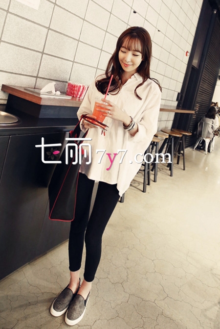 搭配看点:宽松的白衬衣非常的随性,同时也能够轻松的遮掉腰部和小腹的肉肉,不管是将衬衣扎进裤头还是垂荡下去都非常的清爽有范儿。搭配一条简约的黑色小脚裤,舒适又能很好的修饰腿部线条。鞋子选择时下正热的乐福鞋兼具舒适与潮流感,再搭配一款大气的手拿包分分钟变身时尚icon哦。