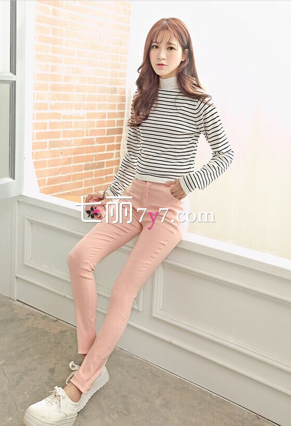 搭配看点:浅粉色裤子搭配简单设计的黑白条纹上衣,适合喜爱韩系风格的女生们,自然的风格与配色可以彰显你的清纯与温婉魅力,最后只要搭配一双休闲鞋,你就会变成可爱的邻家女孩。