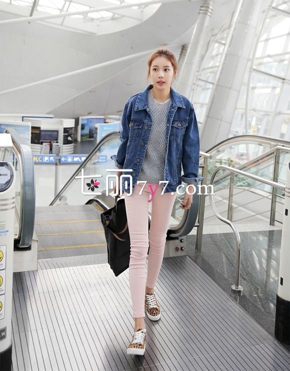搭配看点:嫩粉色小脚裤先是搭配了灰色的粗针毛衣,外面搭配的是深蓝色休闲牛仔外套,看上去十分休闲,颜色来说,牛仔的深蓝色和粉色非常合拍。不仅如此,脚上一双个性十足的豹纹帆布鞋也加入了进来,让整体的搭配的层次性更加明显了,喜爱休闲街头风的MM不妨试试。