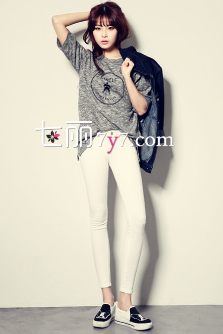 搭配看点:宽松的灰色T恤能够很好的遮掉肚子和小腹的肉肉,同时oversize款式也是时下流行的style哦。搭配白色小脚裤非常的清新,也可以搭配黑色小脚裤,更加帅气,同时也能很好的修饰身材。