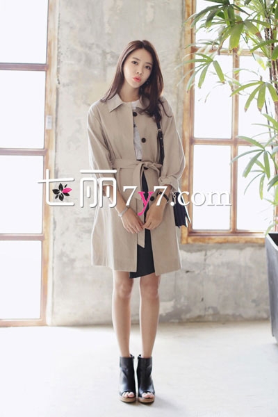 卡其色系带风衣