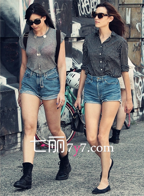 搭配看点:短裤搭配马丁靴、踝靴或切尔西靴都十分有英伦范儿,喜欢摇滚或机车风的菇凉可以大胆尝试搭配马丁靴,上装选择一件素色T恤或格纹衬衣就十分chic。不过格子娇小的菇凉还是建议搭配平底鞋哦,因为踝靴很容易将腿部比例分成三段,中间露出的部分缩短,在视觉上就比较显矮了,尤其是腿部有肉肉的菇凉哦。