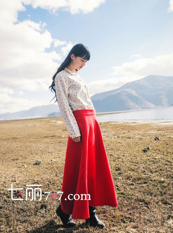 搭配看点:色小图案印花衬衫,棉质的材质富有复古文艺范儿的气息,搭配一条大红色的长裙让色彩碰撞的非常精彩,给人眼前一亮的感觉,再加上一头乌黑亮丽的长卷发,让你变得清新脱俗并且有韩剧女主角的感觉。