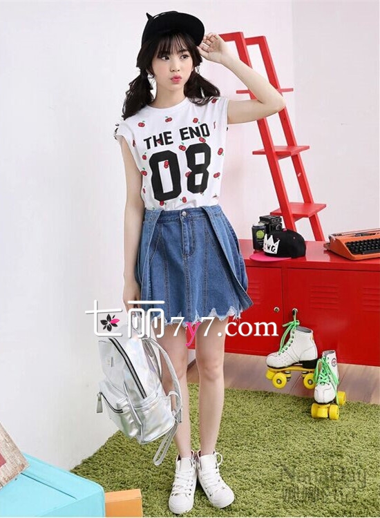 搭配看点:个性设计的裙摆十分具有甜美范,搭配字母印花T恤,简约中却透露出满满可爱风,配上一双运动鞋、双肩背包,这样可爱又休闲范的搭配让人实在无法抵抗。