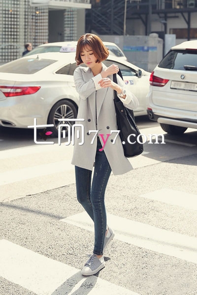 搭配看点:浅灰色的小西装外套,适合上班族的知性装扮,找对方法也能有别样的时尚效果,内穿黑色T,下身穿小脚裤,配上灰色球鞋,利落的BF帅气搭配,五一穿出门逛街也是魅力焦点哟!