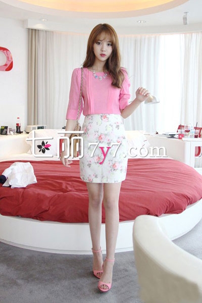 粉色雪纺衫+短裙